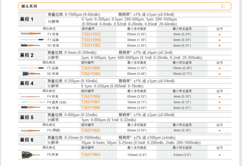 Elcometer355鐵基和非鐵基探頭 的各種探頭模塊能使 Elcometer 355 涂層測厚儀全面、靈活地適應(yīng)所所有的測量用途。根據(jù)要求,探頭模塊可自由互換,在鐵(F)和非鐵(N)金屬基體上都可以。在各種涂層和基體上,大多數(shù)探頭模塊的讀數(shù)度可以達到±1%。遠端探頭從 410mm (16”)延伸至 1100mm (43”)。